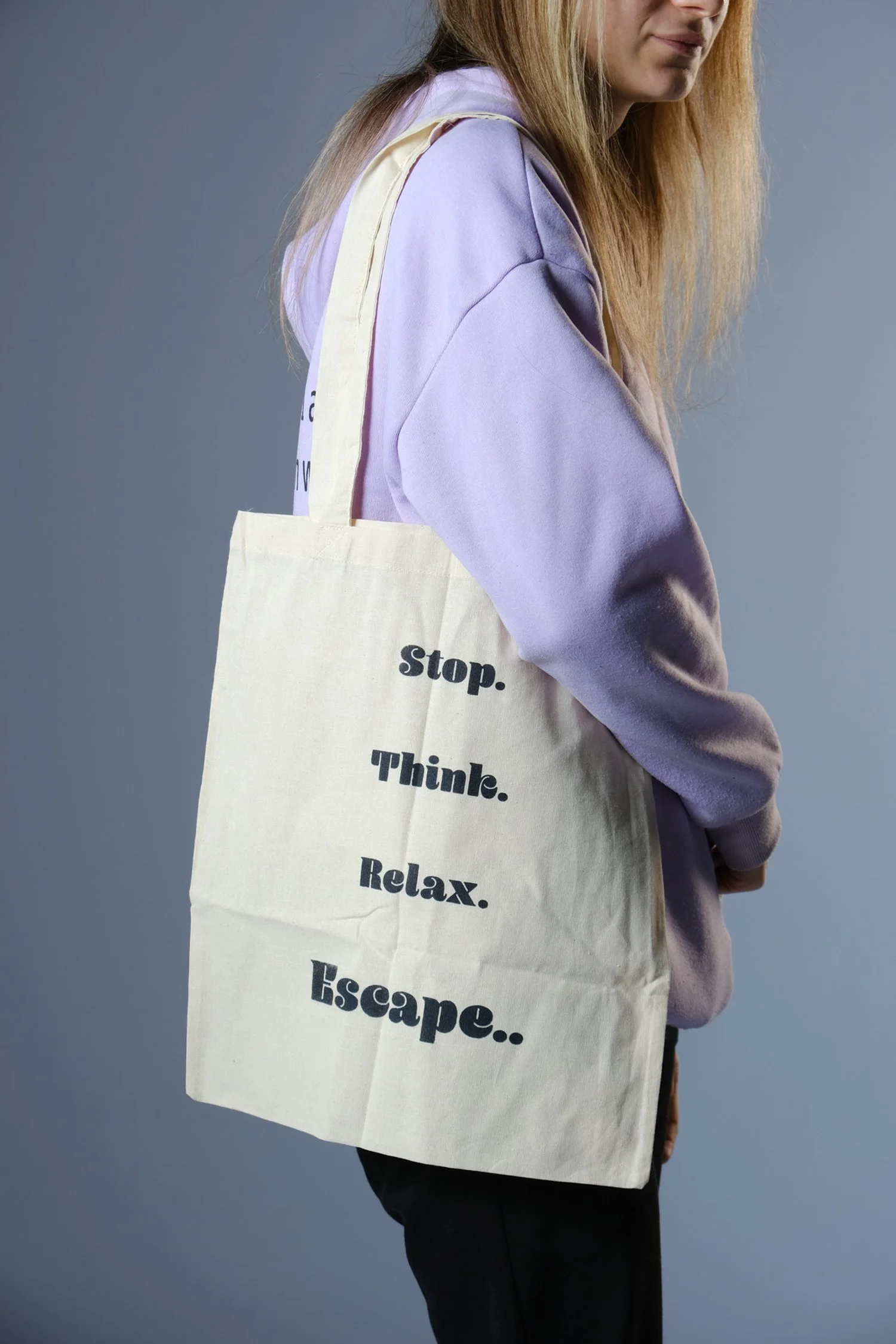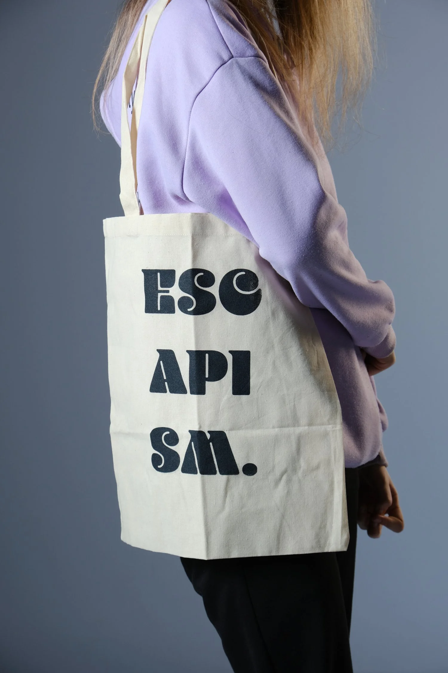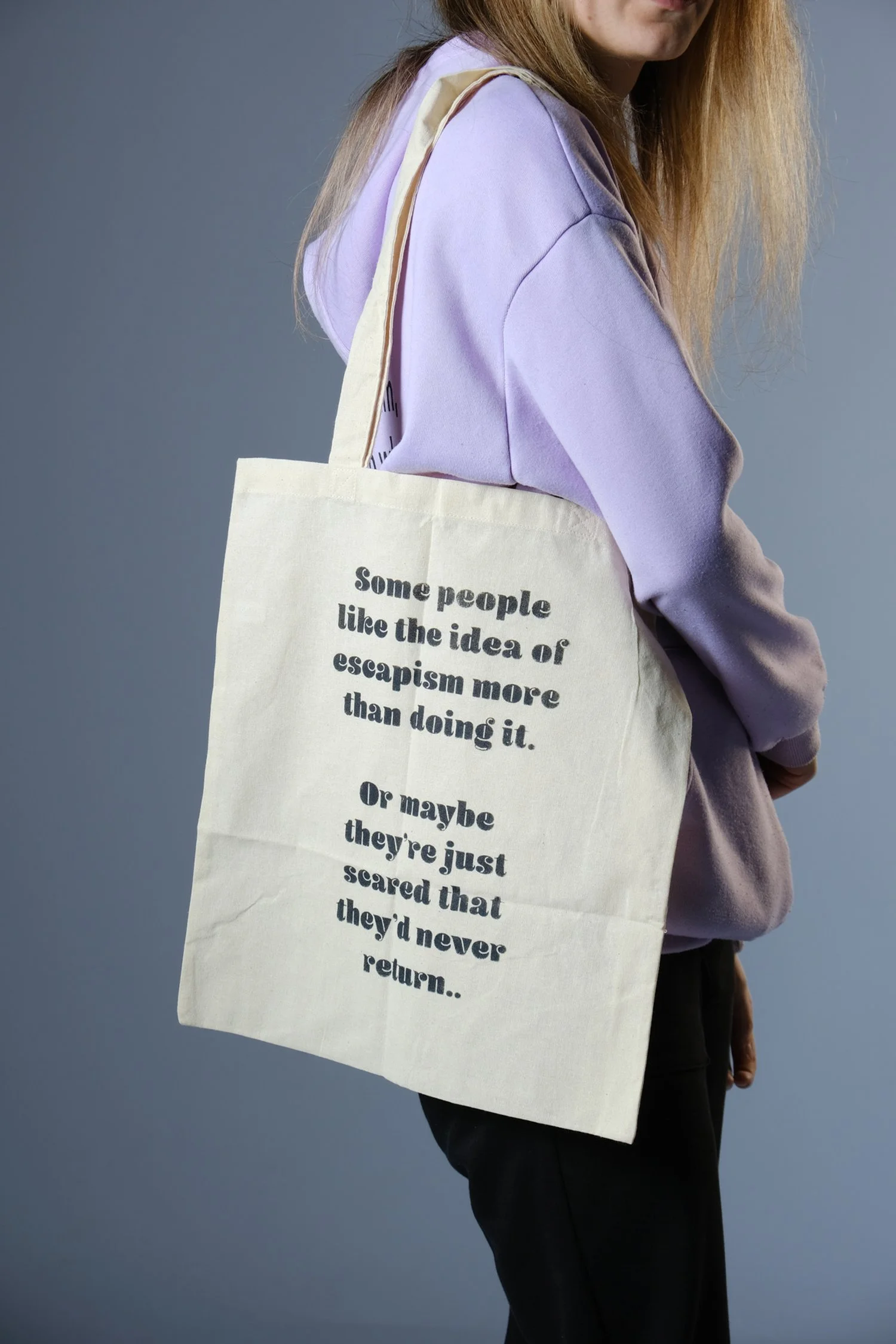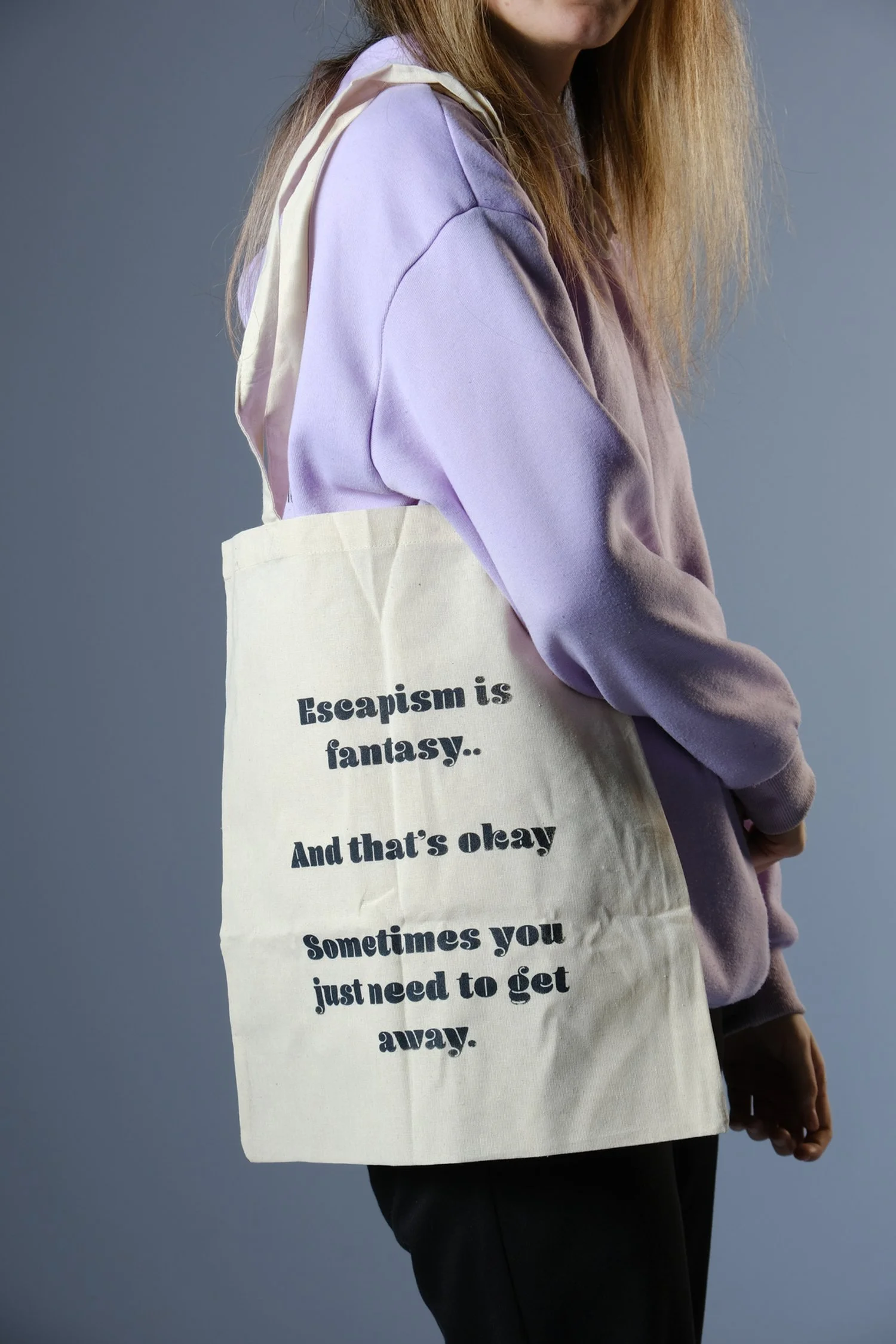 Here I created some totes bags that had quotes relating to the subject of escapism. I created these using Screen Printing.
